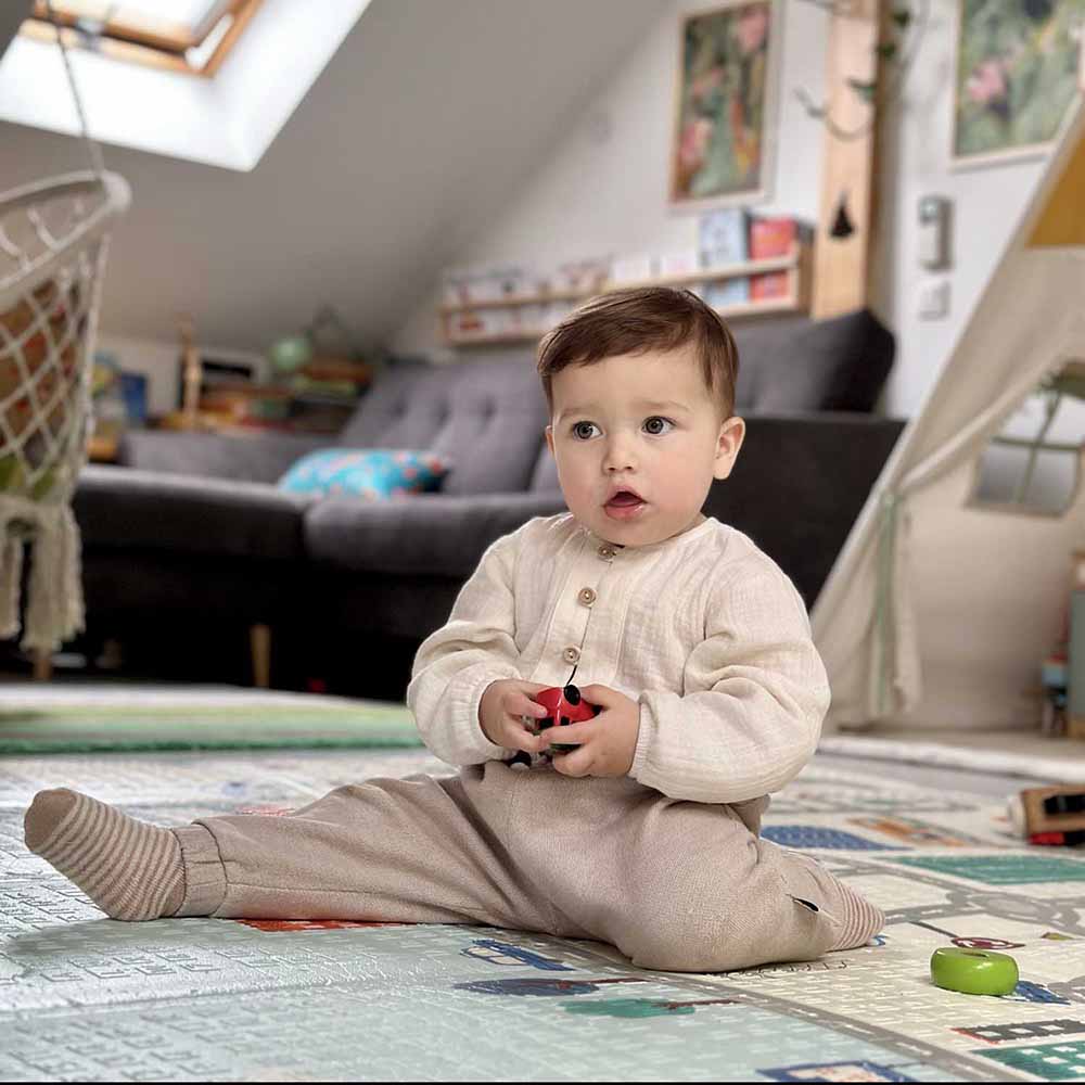 Apreciat de părinți, poate fi purtat zi de zi dar și la evenimente speciale: botez, aniversări, ședințe foto.