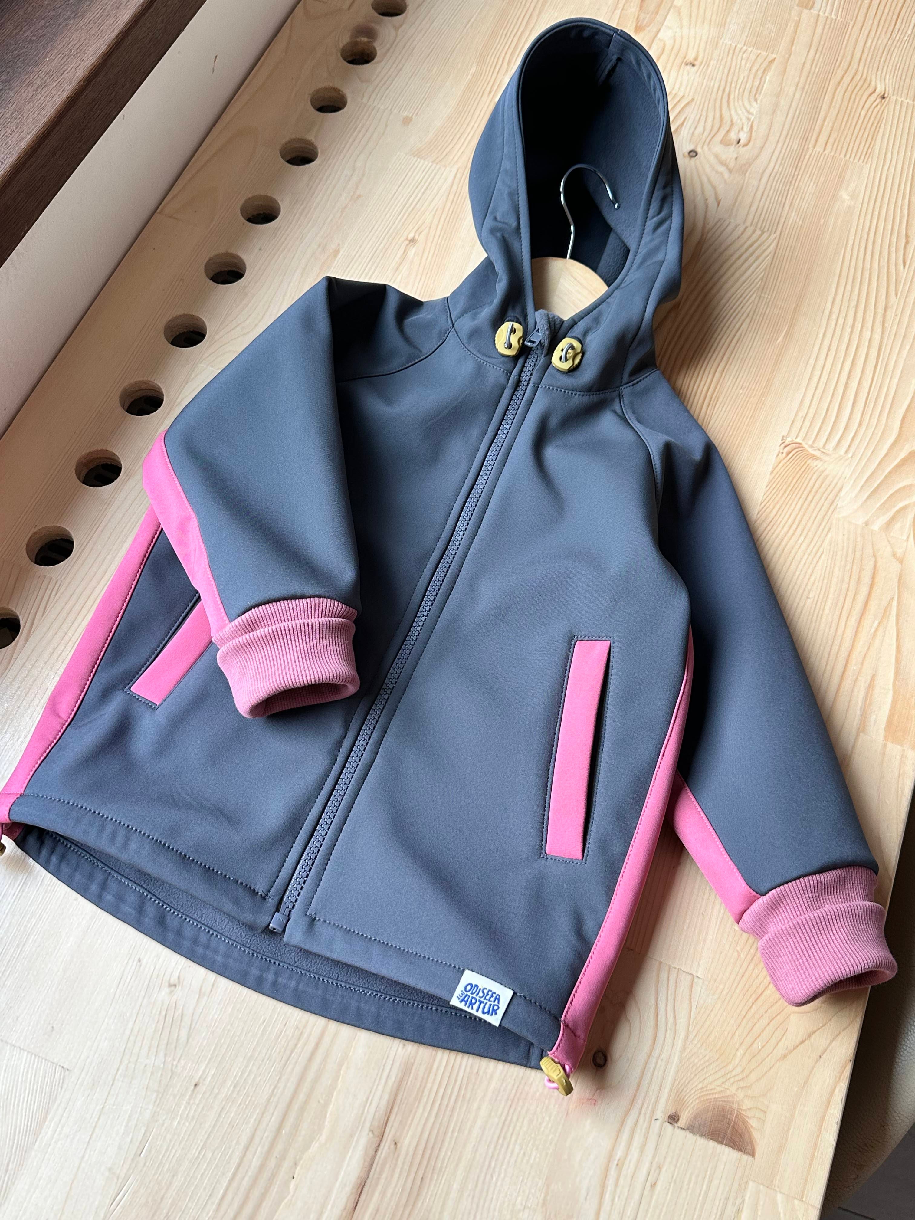 Softshell - stratul interior este fleece moale și călduros, stratul exteriorul are o impermeabilitate de 12.000 mm coloană de apă. Îi ține pe copii uscați și în siguranță împotriva umezelii, în plus, permite pielii să respire, asigurând confortul în timp ce se joacă în aer liber. Diferă de pelerinele de ploaie, care, deși impermeabile, nu oferă aceeași ventilație și confort copiilor.