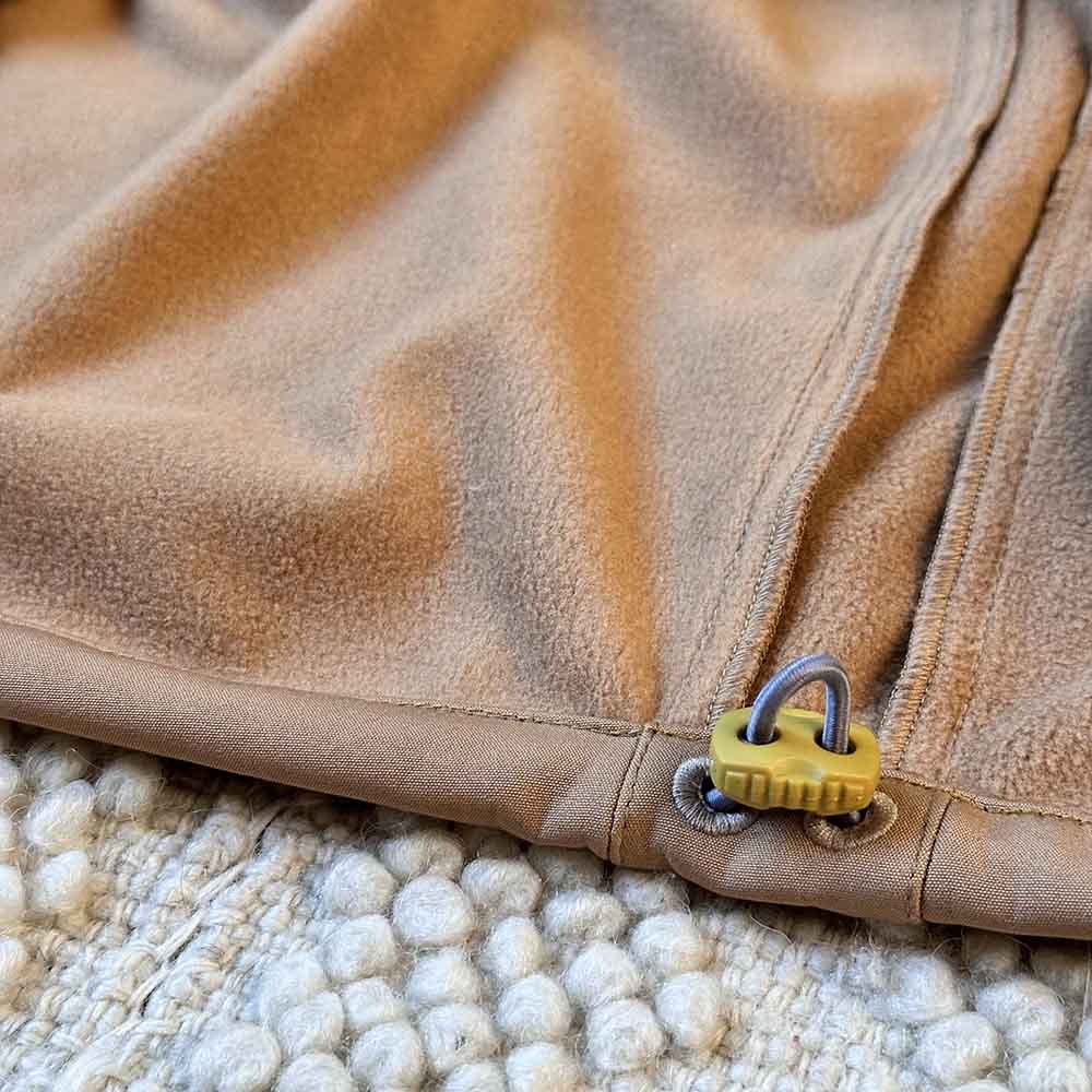 Ajustabil - șnur la bază prevăzut cu opritor pentru a preveni intrarea aerului rece sub jachetă