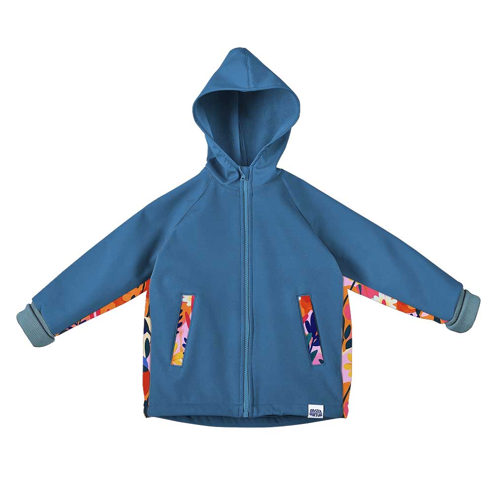 Jachetă cu glugă și fermoar cu apărătoare de bărbie în față, cu buzunare laterale, cu manșete elastice și cu șnur la bază. Concepută pentru a oferi micuților exploratori confortul necesar sesiunilor lungi și neîntrerupte de joacă.