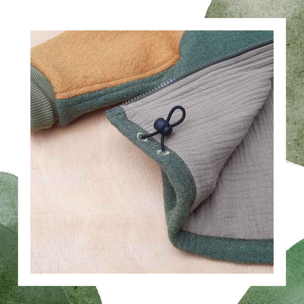 Jachetă căptușită integral, cu glugă și fermoar cu apărătoare de bărbie în față, cu buzunare laterale, manșete elastice și șnur la bază. Concepută pentru a oferi micuților exploratori confort și căldură, necesare sesiunilor lungi și neîntrerupte de joacă.
