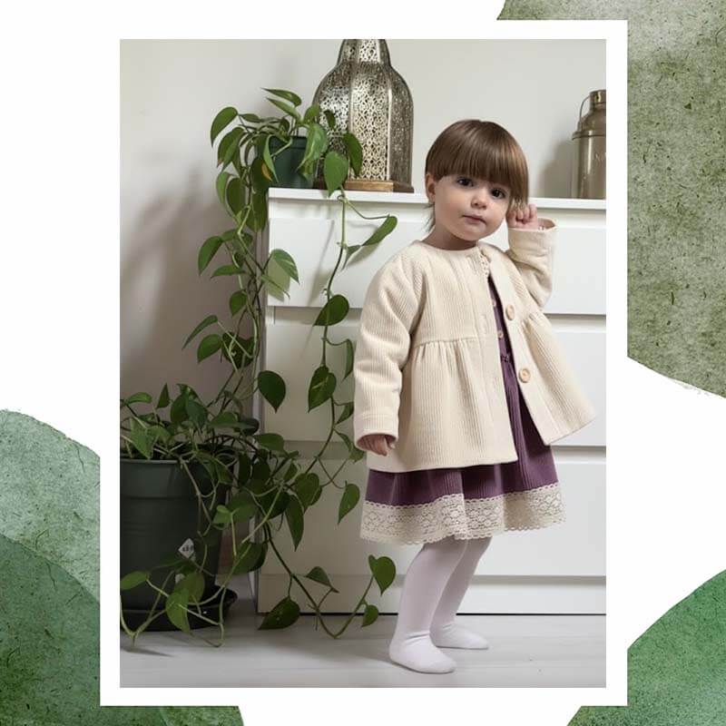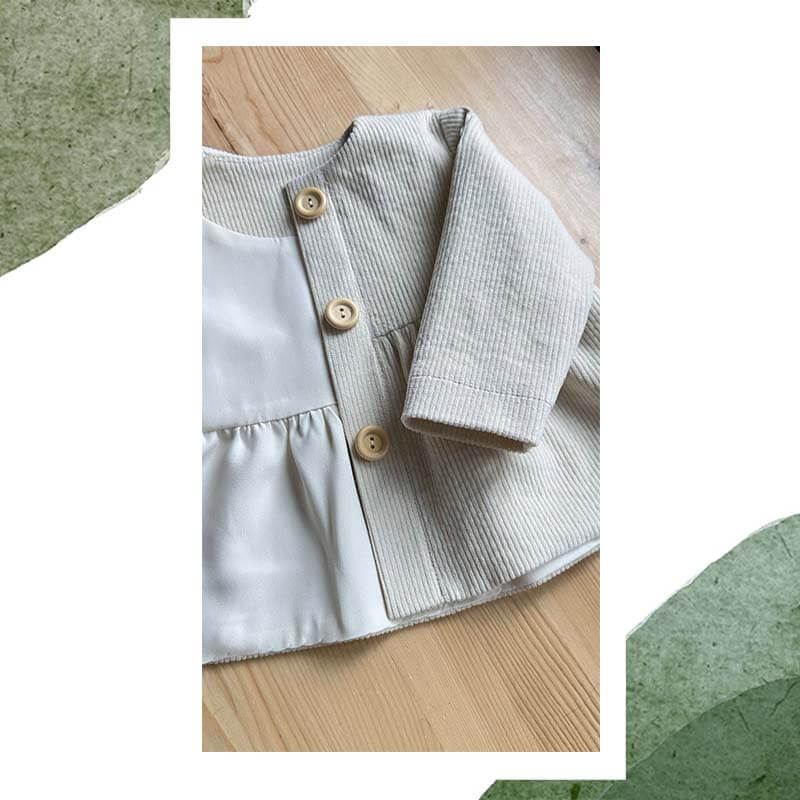 Jachetă din bumbac reiat moale, cu croială ușor evazată. Model cu decolteu rotund, mâneci lungi și închidere cu nasturi de lemn pe toată lungimea feței. Interiorul este integral căptușit cu mătase naturală pentru un plus de confort și protecție a pielii.