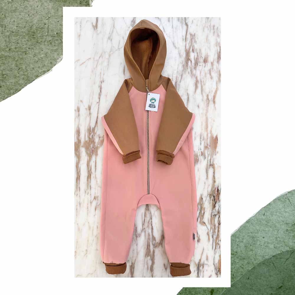 Salopeta overall impermeabil si rezistent la frecare, pentru bebelusi si copii, Odiseea lui Artur. Culoare caramel pink