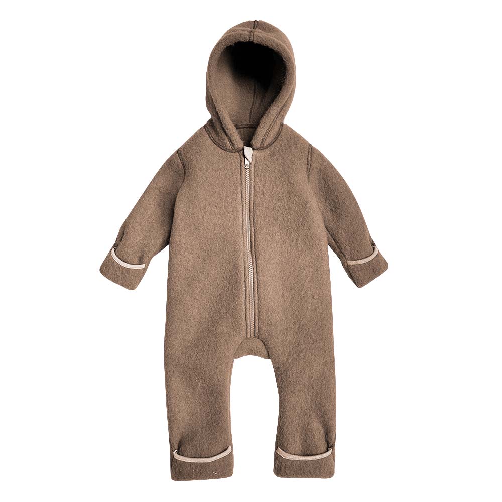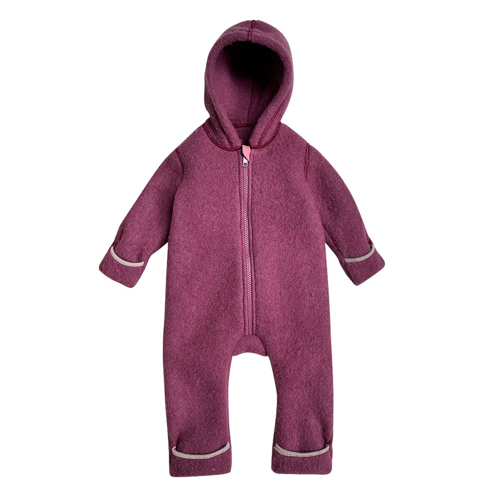 Salopetă din lână fleece, moale și călduroasă, cu manșete răsfrânte pentru a ține cald mâinilor și botoșei.