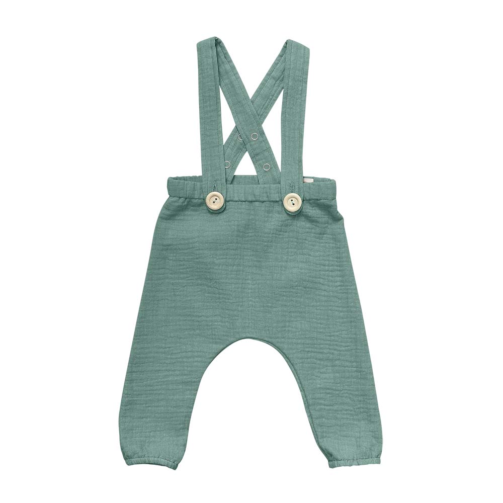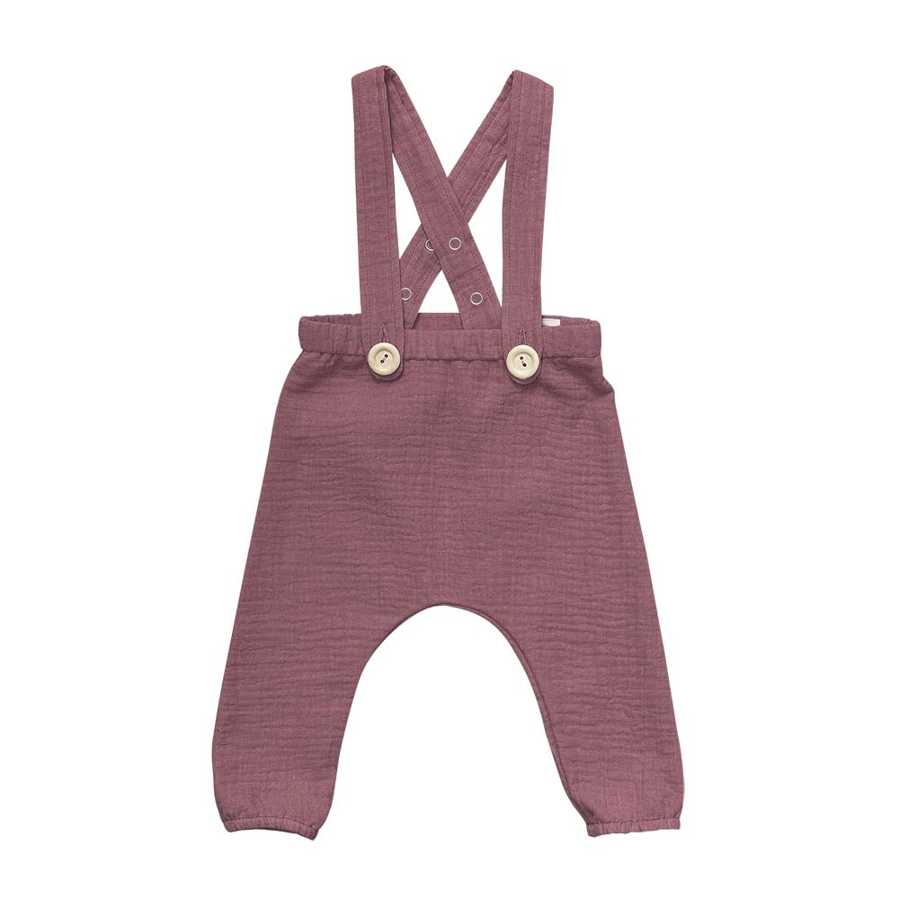 Bretelele ajustabile sunt detașabile, astfel încât pantalonul poate fi purtat și în sesiunile lungi și neîntrerupte de joacă și explorat 🧭.