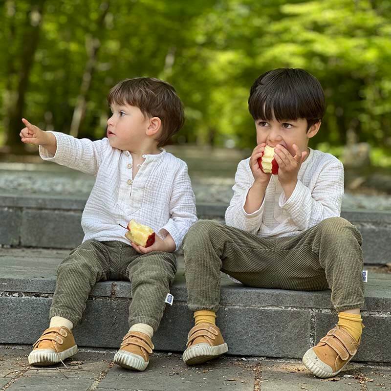Pantalon: 97% bumbac rezistent la aventurile micului explorator, 3% elastan, astfel pantalonul devine elastic, oferind un nivel suplimentar de confort și libertate de mișcare.