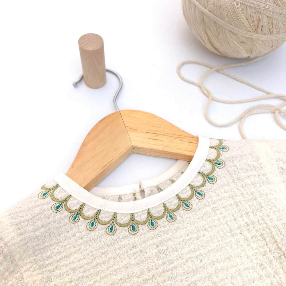 Am folosit muselină moale de bumbac potrivită pentru pielea delicată a bebelușilor și am ales un model cu croi lejer pentru a asigura confortul deplin și libertate de mișcare. Acest set de muselină pentru bebeluși este perfect pentru a crea o ținută elegantă și rafinată, cu aspect modern și aparte, potrivit pentru astfel de ocazii speciale.
