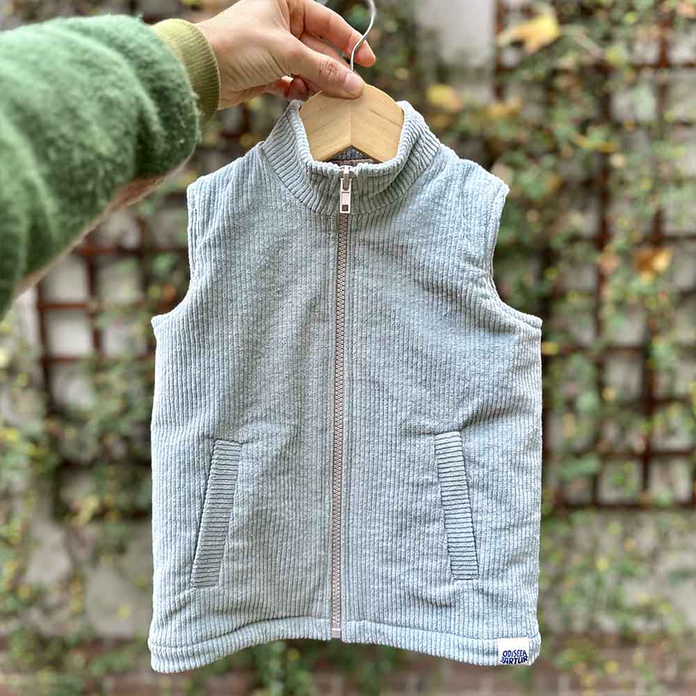 Vestă călduroasă cu guler și fermoar, cu buzunare în față, căptușită cu muselină matlasată. Confortabilă și practică, pentru bebeluși și copii, potrivită pentru sesiuni lungi și neîntrerupte de explorat 🍂. Cu șnur la bază prevăzut cu opritor pentru a preveni intrarea aerului rece sub vestă.